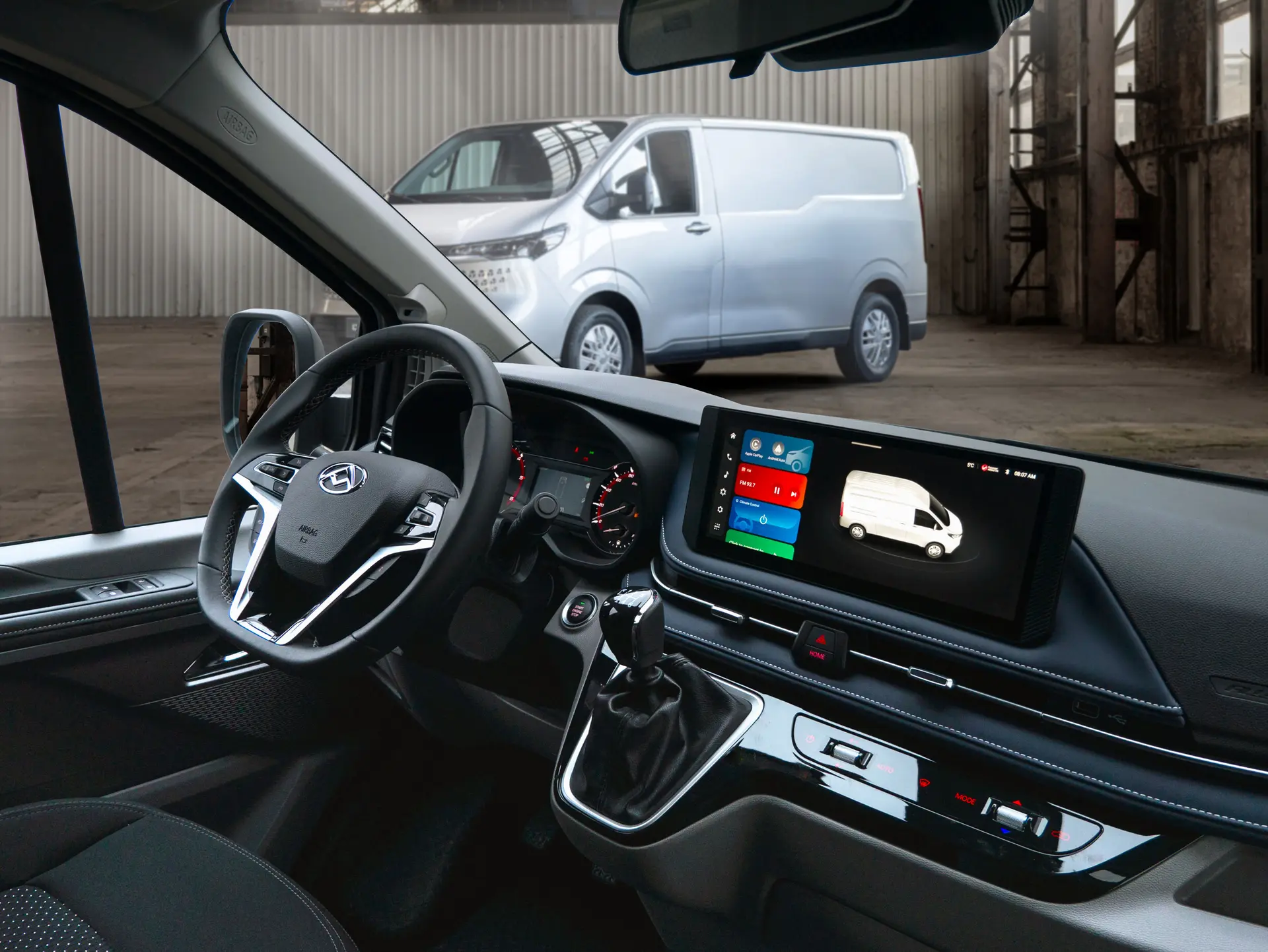 Interior confortável e funcional. O painel inclui um ecrã táctil de 12,3 polegadas com integração para Apple CarPlay e Android Auto, mantendo o condutor sempre conectado. O assento do condutor é ergonómico, o volante é multifunções em couro, tudo pensado para uma condução mais agradável.